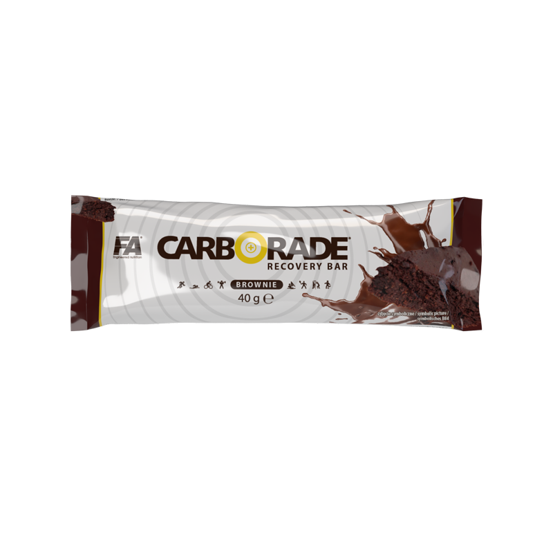 CARBORADE® Recovery Bar. A brownie flavoured bar in milk chocolate.